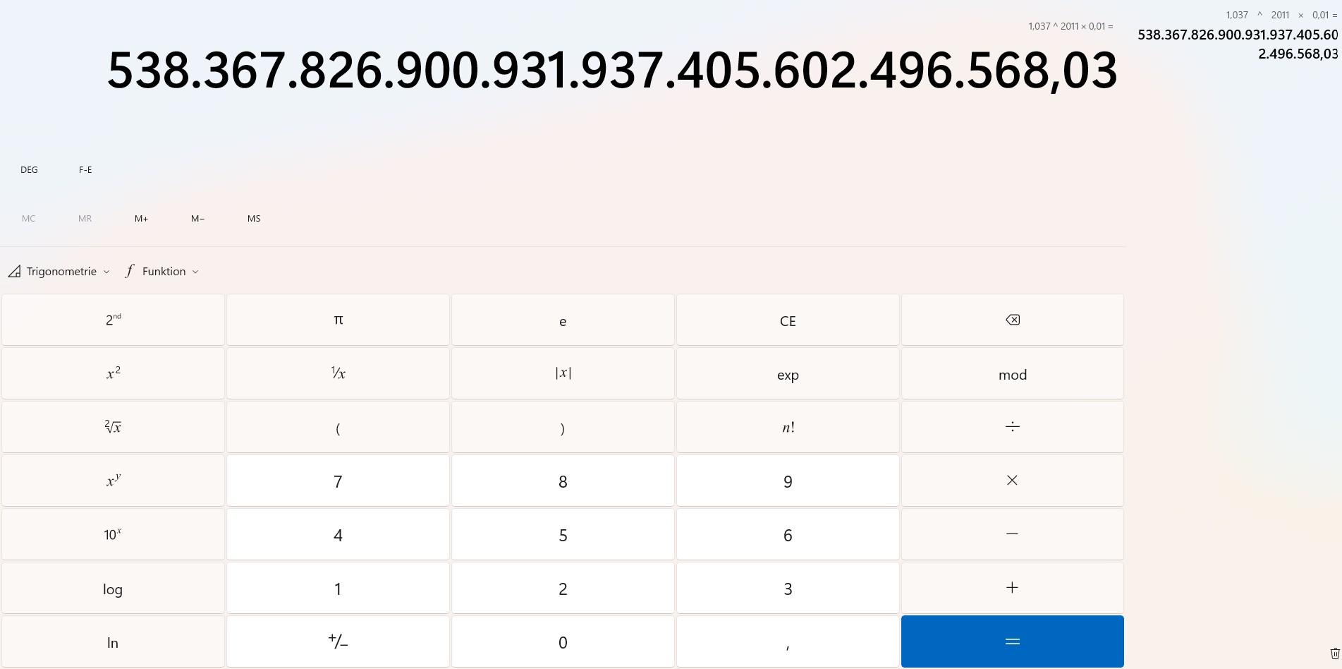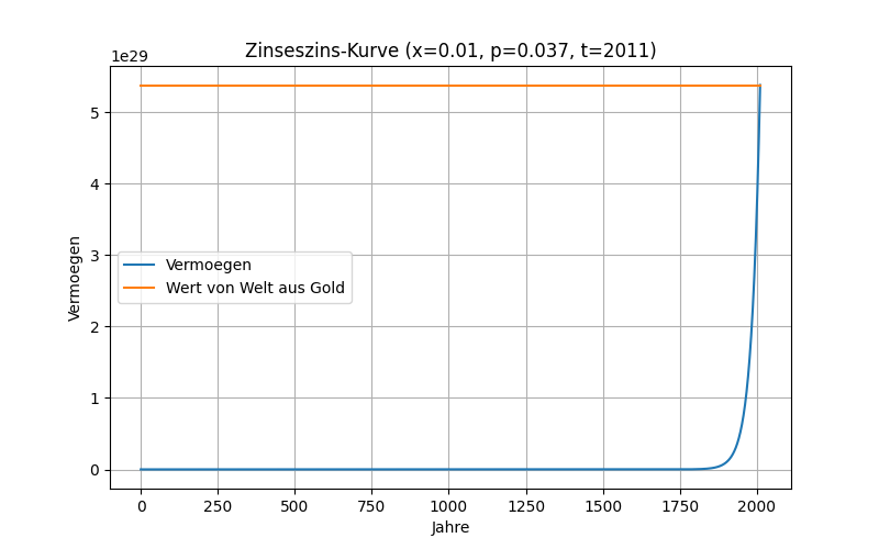 Wir haben es mit exponentiellen Wachstum zu tun. Bei einem Zinssatz von 3,7 Prozent verdoppelt sich das Kapital alle 20 Jahre.